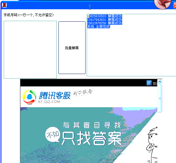 > 批量解除手机开钻拉黑状态工具
