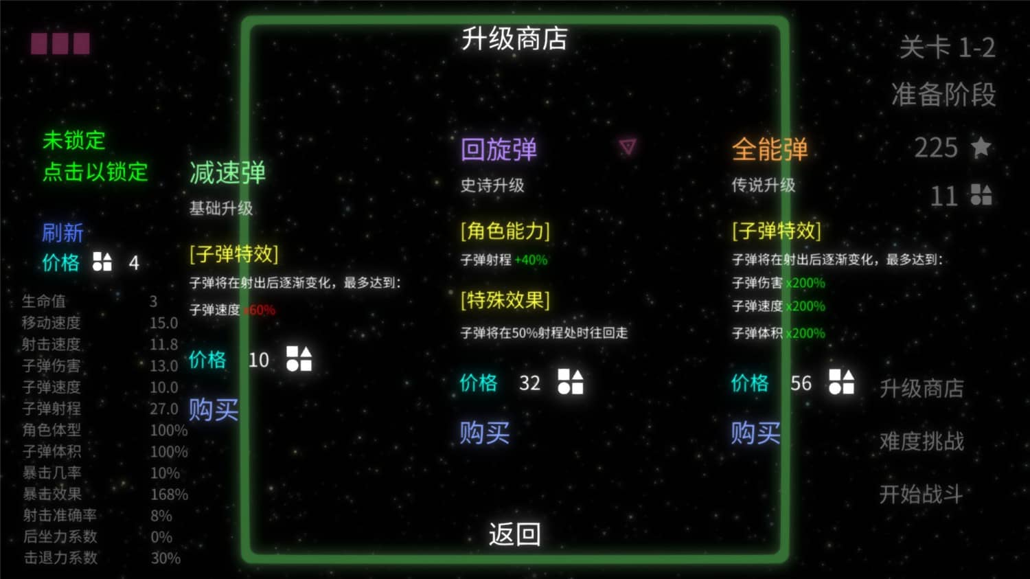 《几何竞技场》是一款融合了RPG与Roguelite元素的弹幕射击游戏,致力于给玩家带来爽快的战斗体验。9大特色角色、12种色彩变异、几十种强力升级道具供你选择!无穷的属性组合、永久强化、无尽挑战、自定义难度,打造属于你自己的游戏体验!