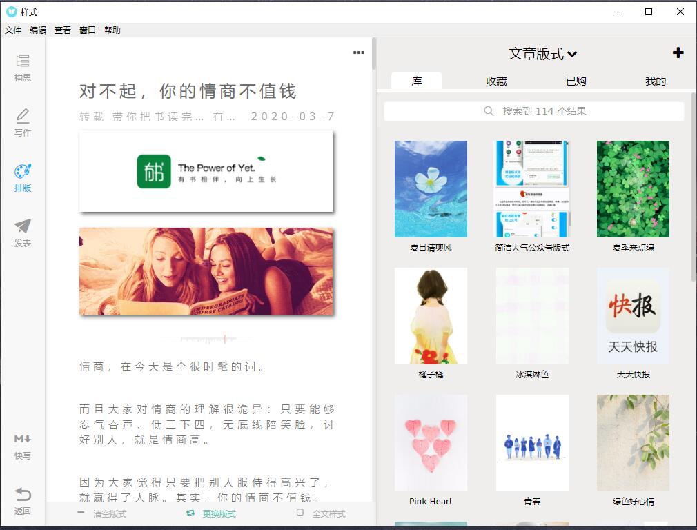 3、媲美桌面端的移动图文一键排版。